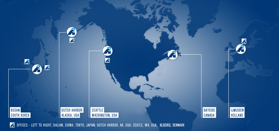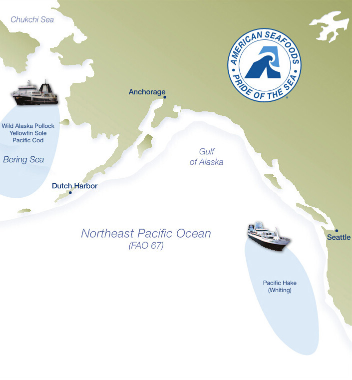 美國海產有限公司捕撈和加工魚類在兩個海域。阿拉斯加鱈魚、太平洋真鱈和黃金鰈魚是在白令海東部和阿拉斯加的阿留申群島之間的區域捕撈的。太平洋無須鱈是在太平洋和美國西北部海岸之間捕撈的。
